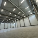 Az E1-es csarnok két részre osztható szekcionált iparikapuval biztosított az átjárás. Az egyik csarnokrész 4*4,5 méteres szekcionált ipari kapuval ellátott, a raktár másik felében dokkoló kerül kialakításra, mely biztosítja a könnyebb teher rakodást. Az épület iroda és raktár része is fűthető klímával illetve, termoventilátorokkal.